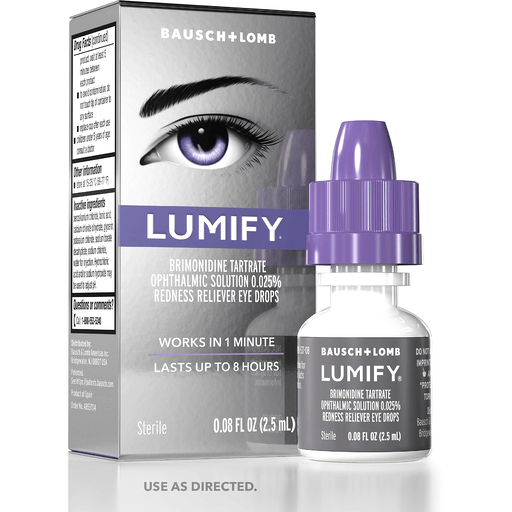 LUMIFY eye drops significantly reduce redness to help eyes appear whiter, brighter, and more radiant. LUMIFY is a unique, FDA approved formulation, that was developed by doctors and is clinically proven to reduce redness in 1 minute and last up to 8 hours. LUMIFY works differently to selectively target redness with a lower risk of potential side effects. Contains absolutely no bleach or dyes.Adults and children 5 years and older. Instill 1 drop in the eye(s)every 6-8 hours, no more than four times daily.