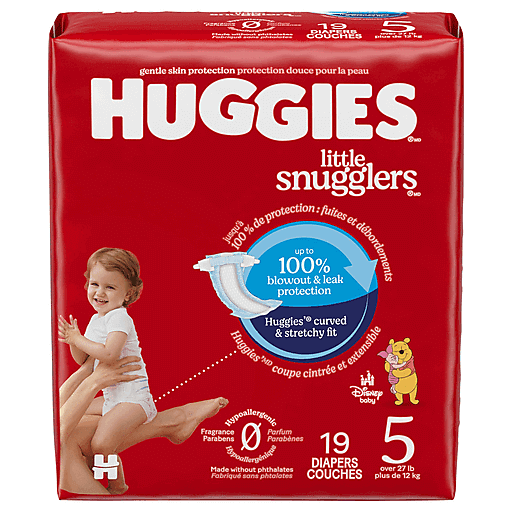 When it comes to keeping your little one clean and comfortable, Huggies Little Snugglers Diapers are the perfect choice. With up to 100% blowout and leak protection, Little Snugglers baby diapers offer up to 12 hours of leak protection and have 28% fewer blowouts.* Huggies Little Snugglers baby diapers offer gentle skin protection and showcase leg cuffs that create a comfortable seal to contain mess. Made with your baby’s skin health in mind, our hypoallergenic diapers are made without phthalates, parabens, lotions, elemental chlorine and natural rubber latex. To ensure that you know when your baby’s diaper is ready to be changed, each diaper features a color-changing wetness indicator. Featuring adorable designs from Disney’s Winnie the Pooh, Little Snugglers Diapers are available in size Preemie (up to 6 lbs), size Newborn (up to 10 lbs), size 1 (8-14 lbs), size 2 (12-18 lbs), size 3 (16-28 lbs), size 4 (22-37 lbs), size 5 (27+ lbs) and size 6 (35+ lbs). For the perfect diapering duo, pair Huggies diapers with Huggies Natural Care Sensitive Baby Wipes! (*BM Leakage Size 1 versus leading store brand)